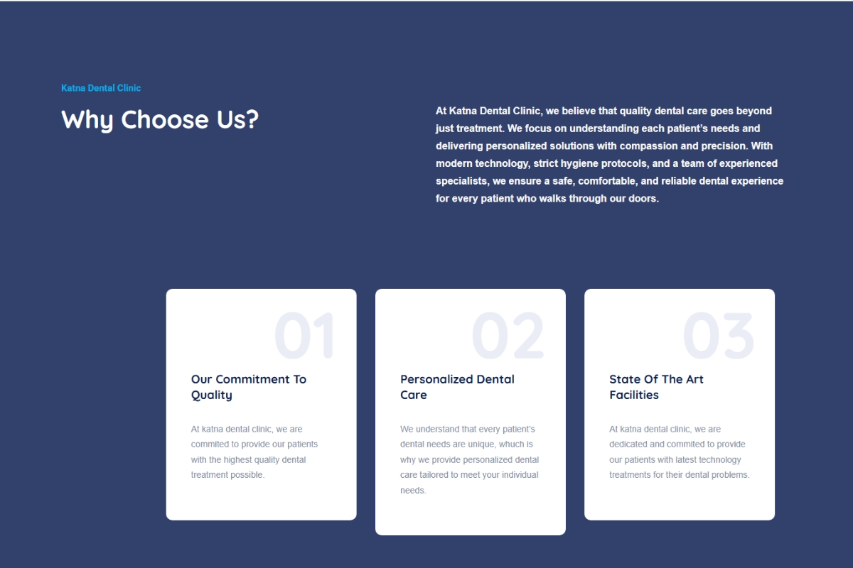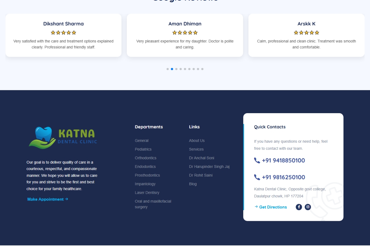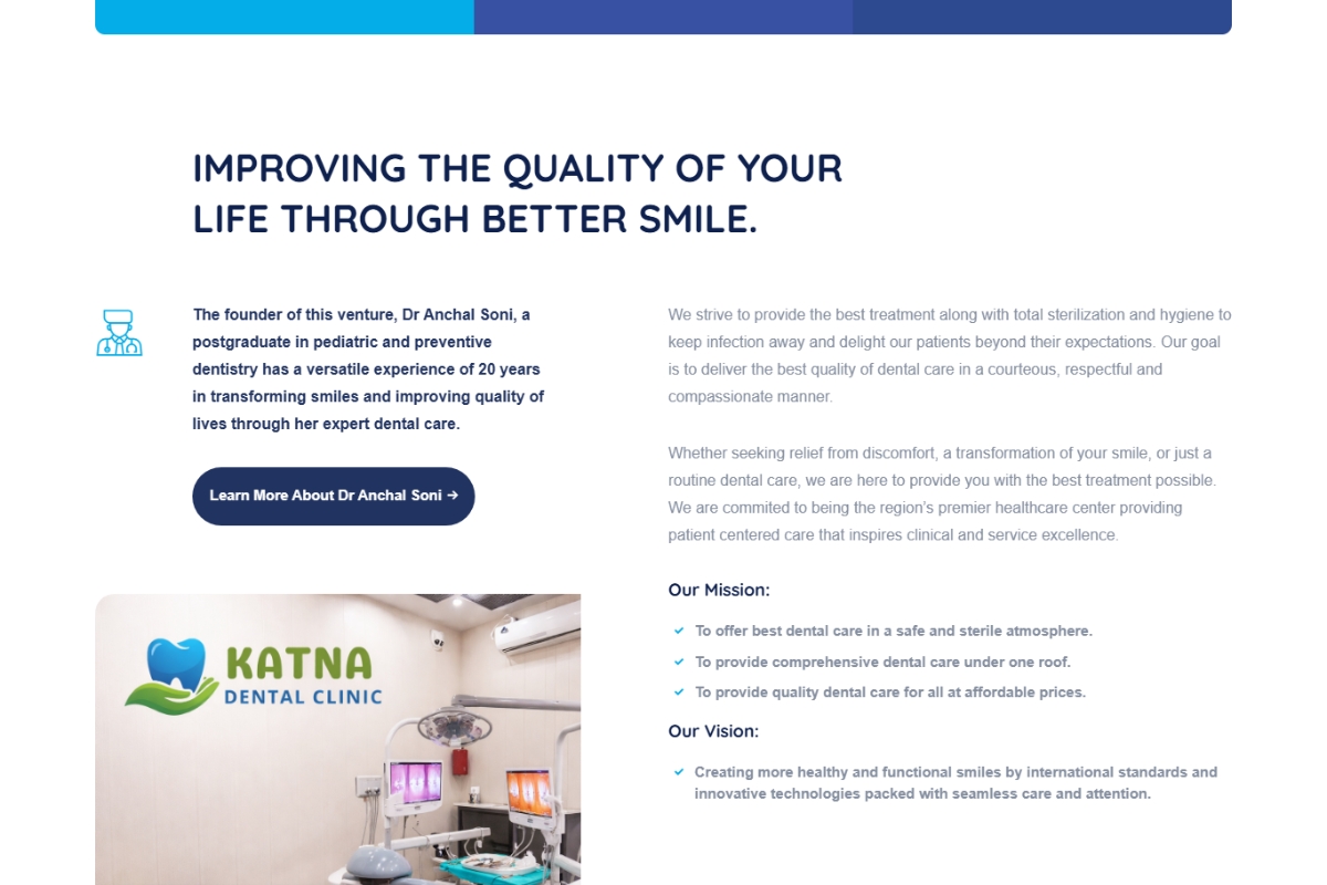 Katna Dental Clinic needed a warm, approachable digital presence that would reflect their commitment to comfort, hygiene, and professional care—while standing out in a highly localized healthcare market.
